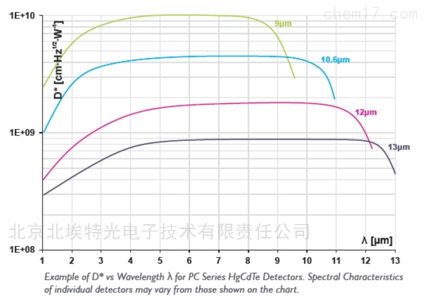 | 制冷MCT | 响应波长:2-13微米; | 制冷光电探测器 | 优化波长:13微米 |