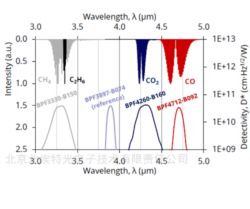 | 中心波长: | 3330、3897、4260、4712 纳米 | 探测率D*: | >3.37E10 cmHz1/2/W |
